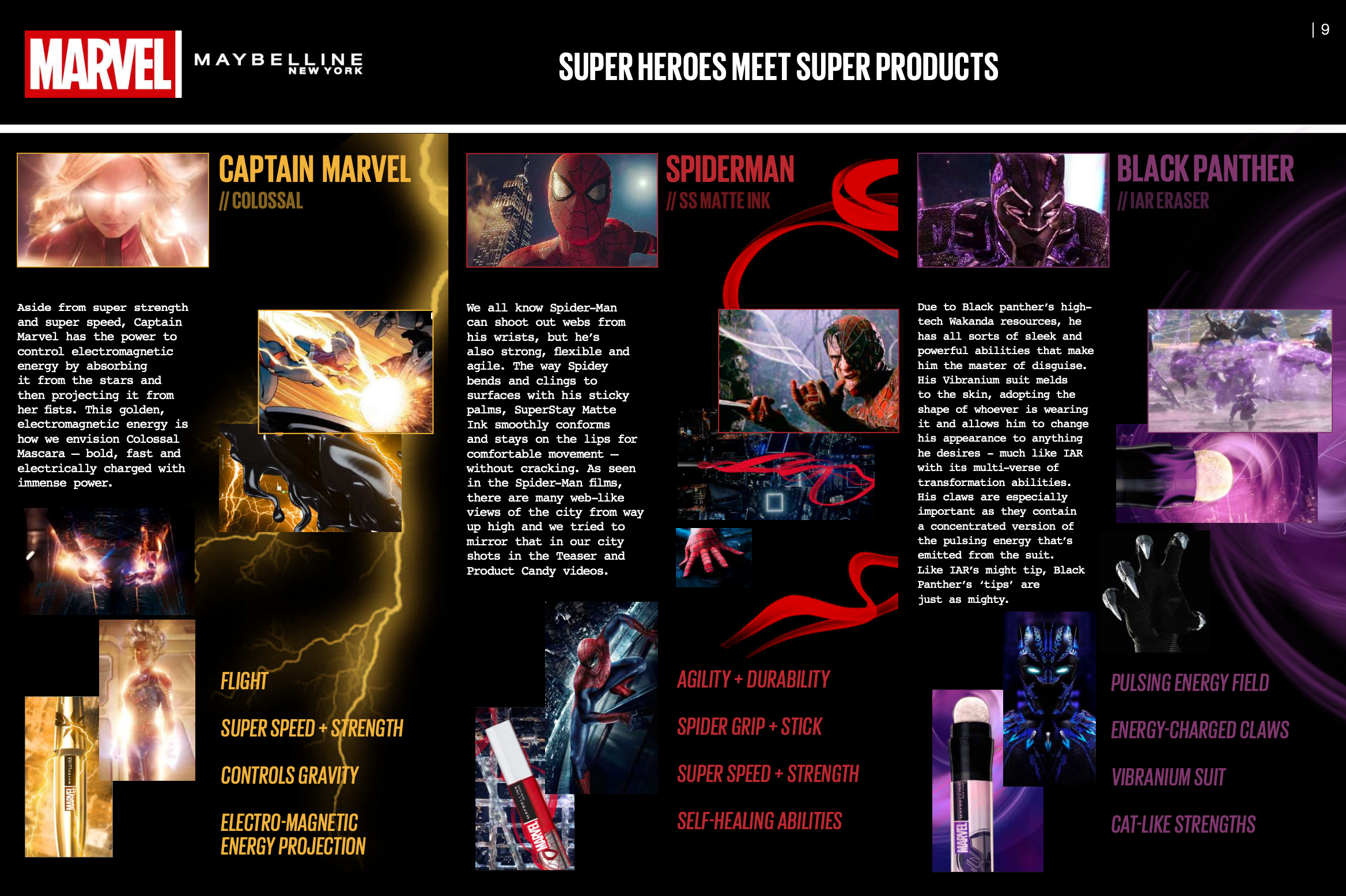 The most epic cross-over in a limited edition collection, pairing Maybelline’s top-rated products with Marvel’s iconic superheroes.